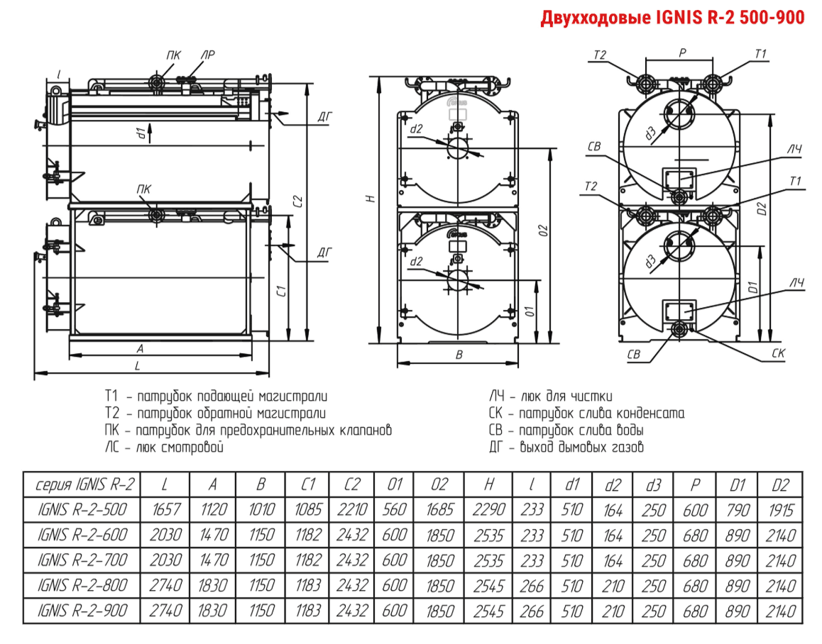 Технические характеристики модульного водогрейного трёхходового котла ARCUS IGNIS R-2-700